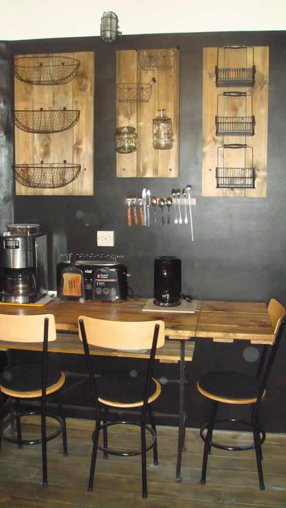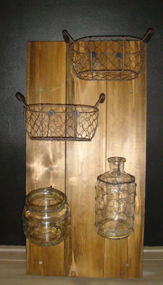 Új, öregbített fából készült konyhai tároló, rendszerező fali panel (pl. zöldség, gyümölcs, pékáru, fűszer…tárolására), matt lakkozással.