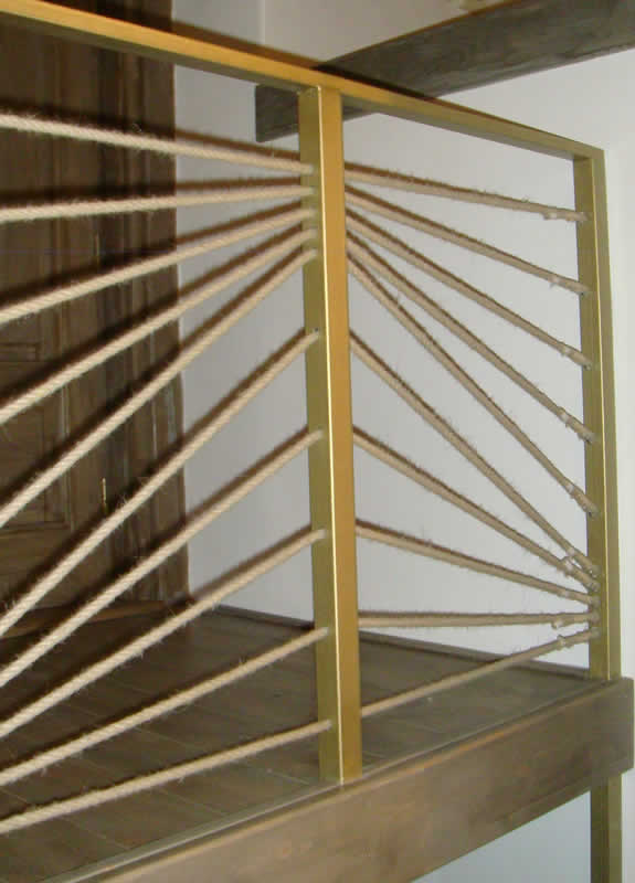 Galéria korlát, lépcső korlát feszített hajókötéllel