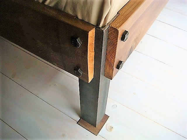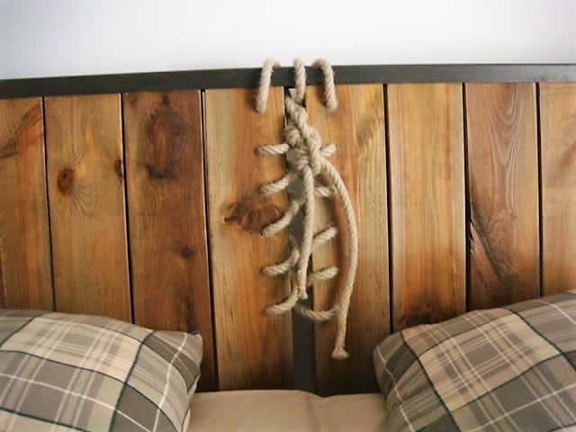 Csiszolt, korrodeált vas lábakkal, hajókötéllel kombinálva.